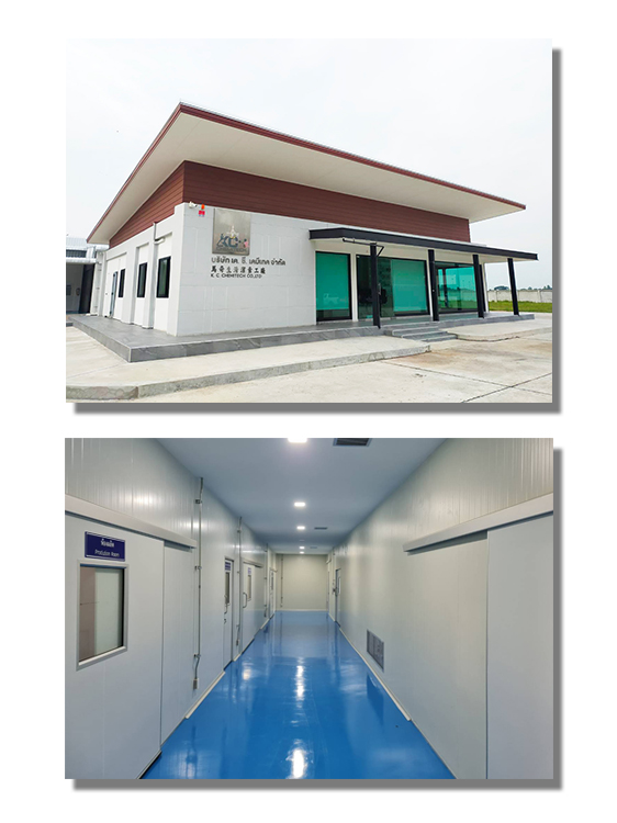 Inside the new factory area Design and construction to support international standard certification, consisting of office buildings. Production building and warehouse building Technology, tools, machinery and modern production equipment are used to control quality and increase production capacity. Including the management of industrial waste treatment systems to meet international production standards. GMP and ISO 9001 certified.